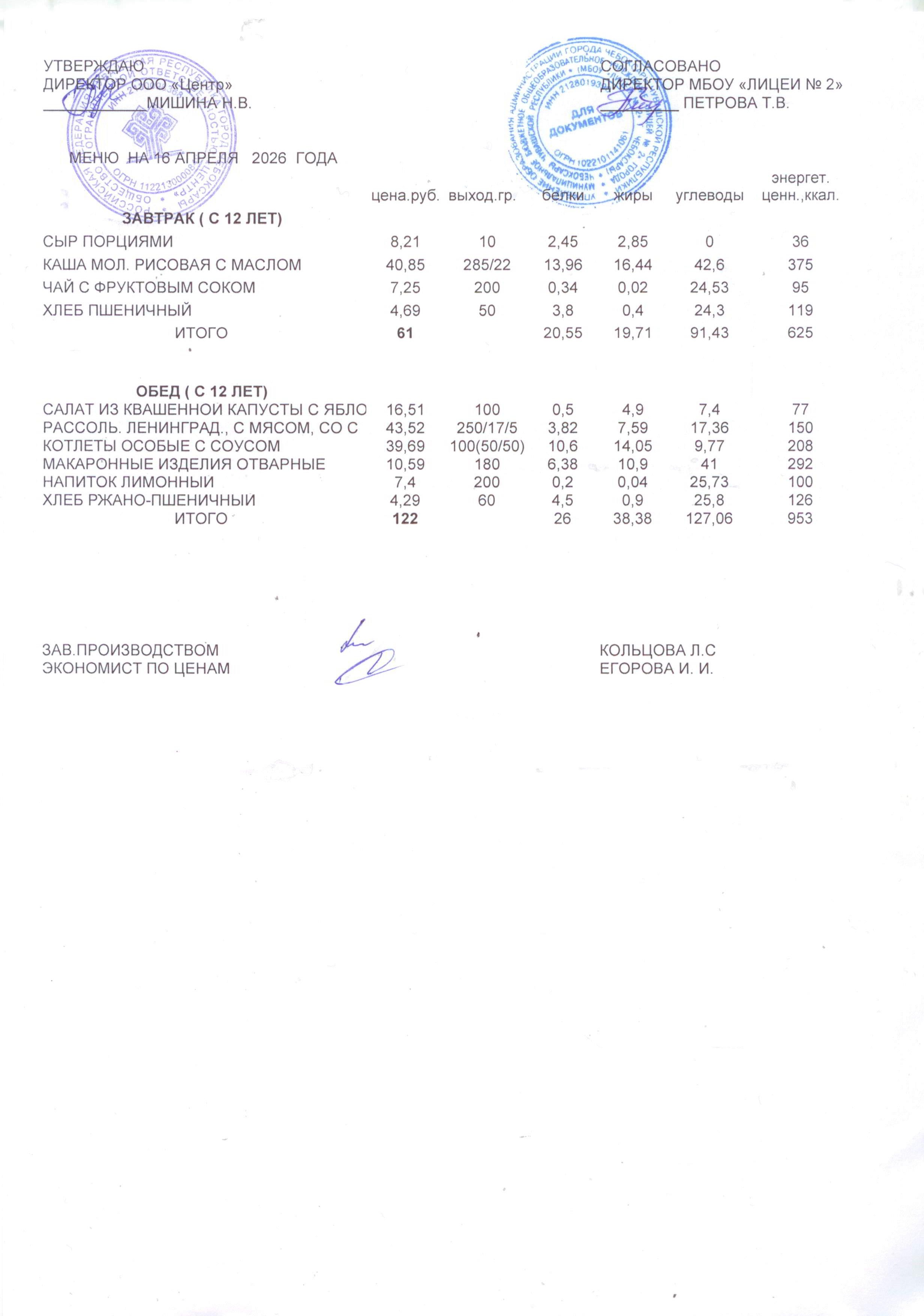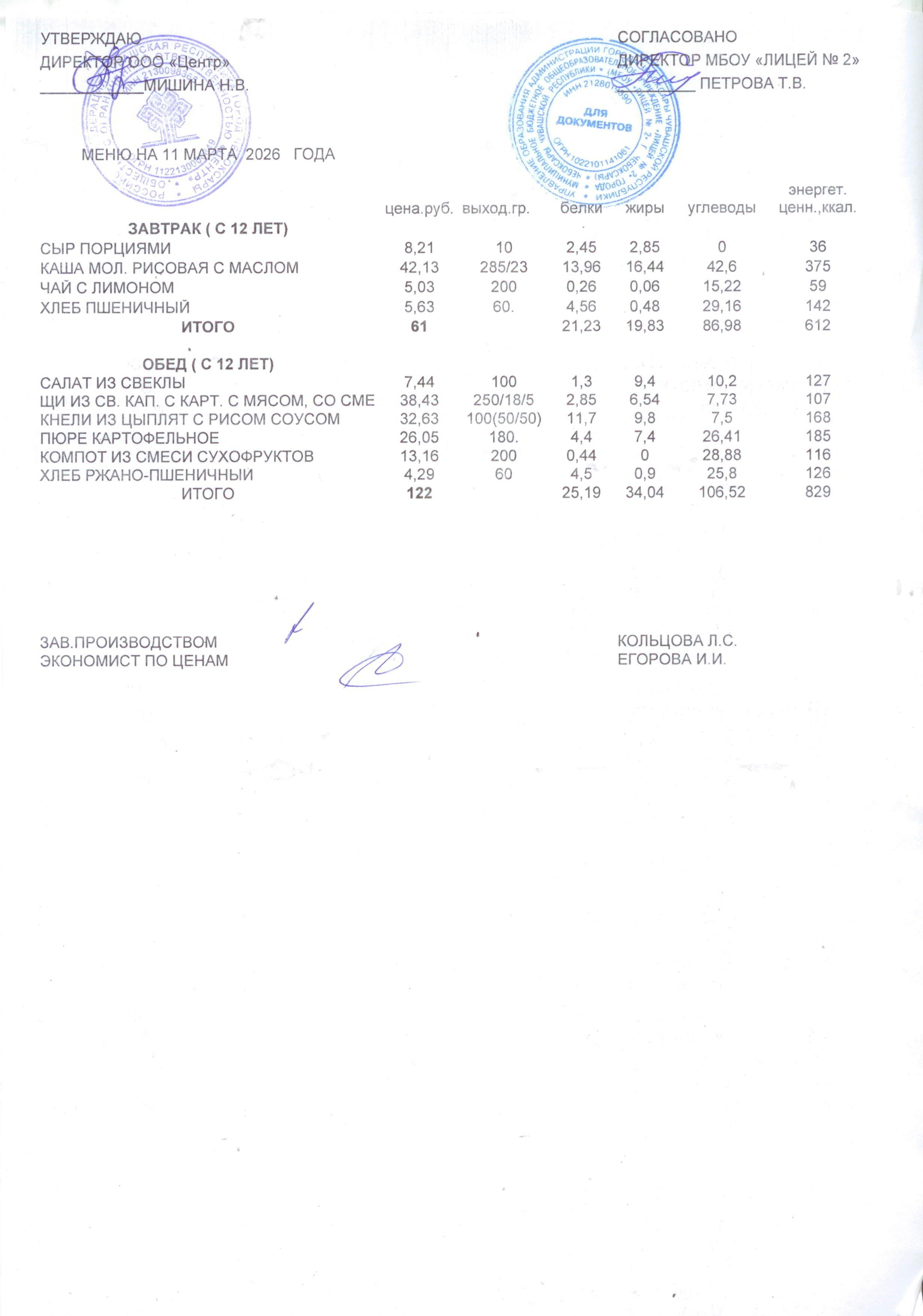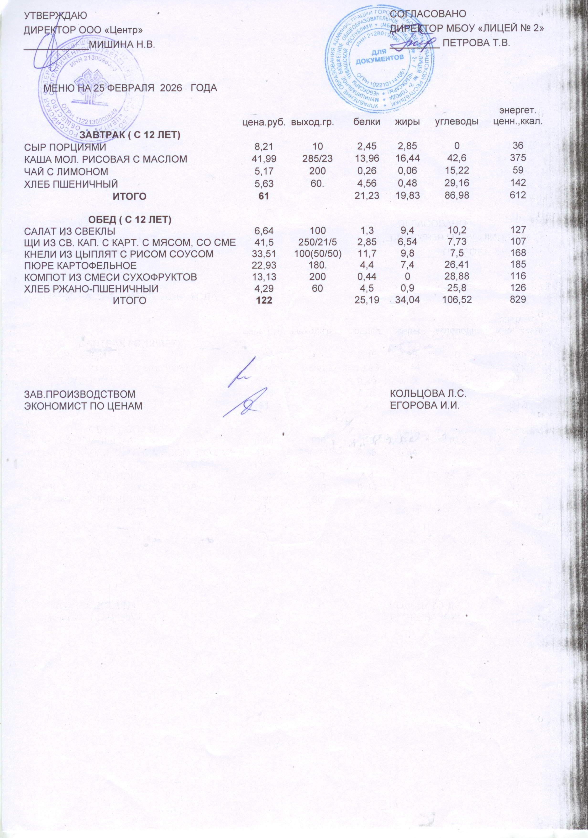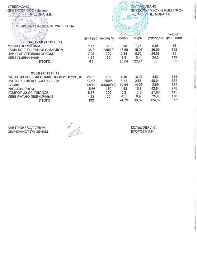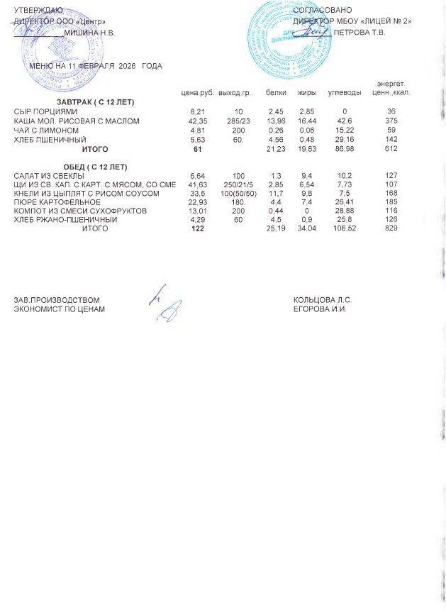 Ежедневное меню 9-11 классы 2025-26 уч. год