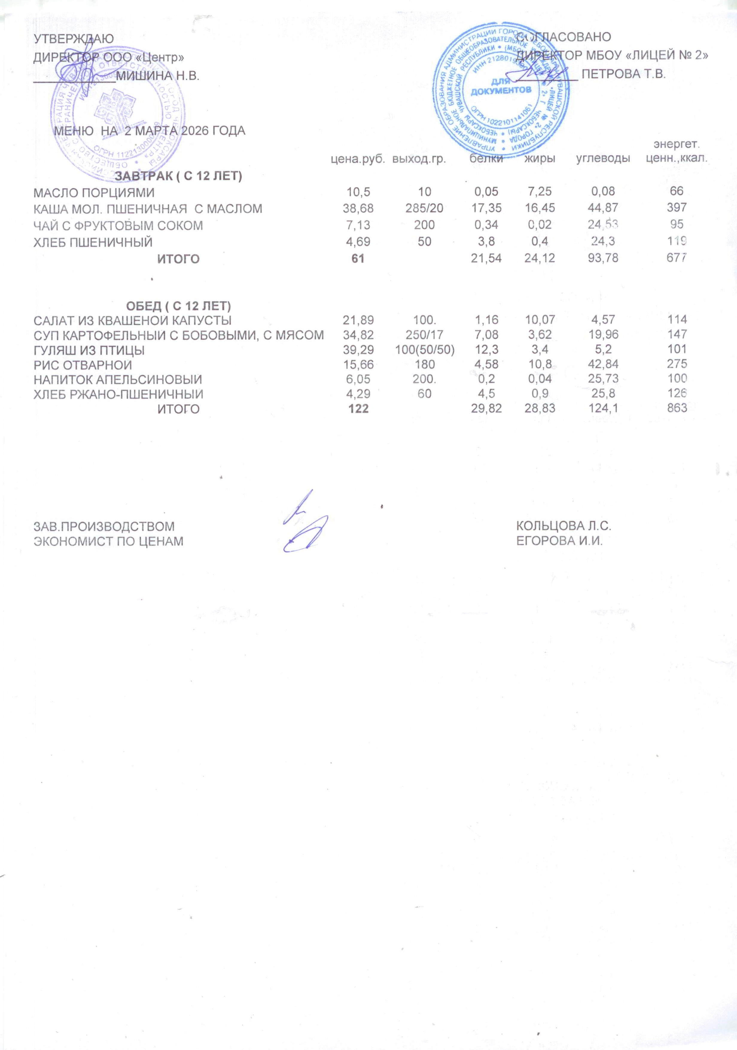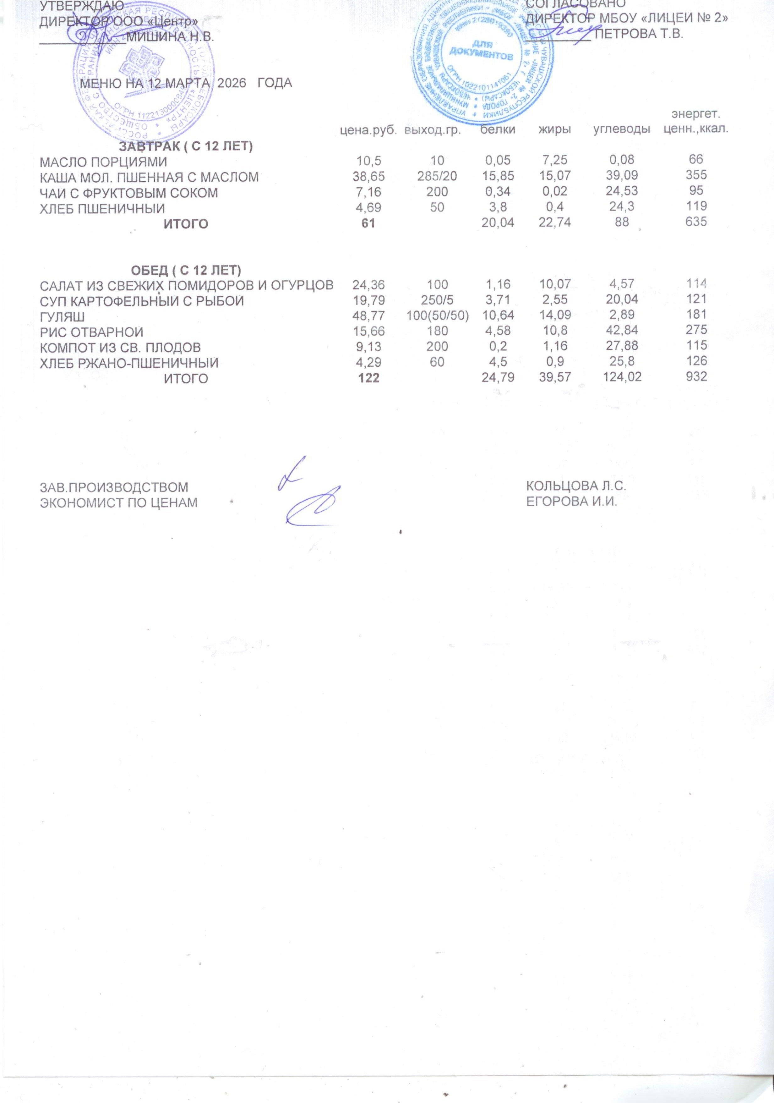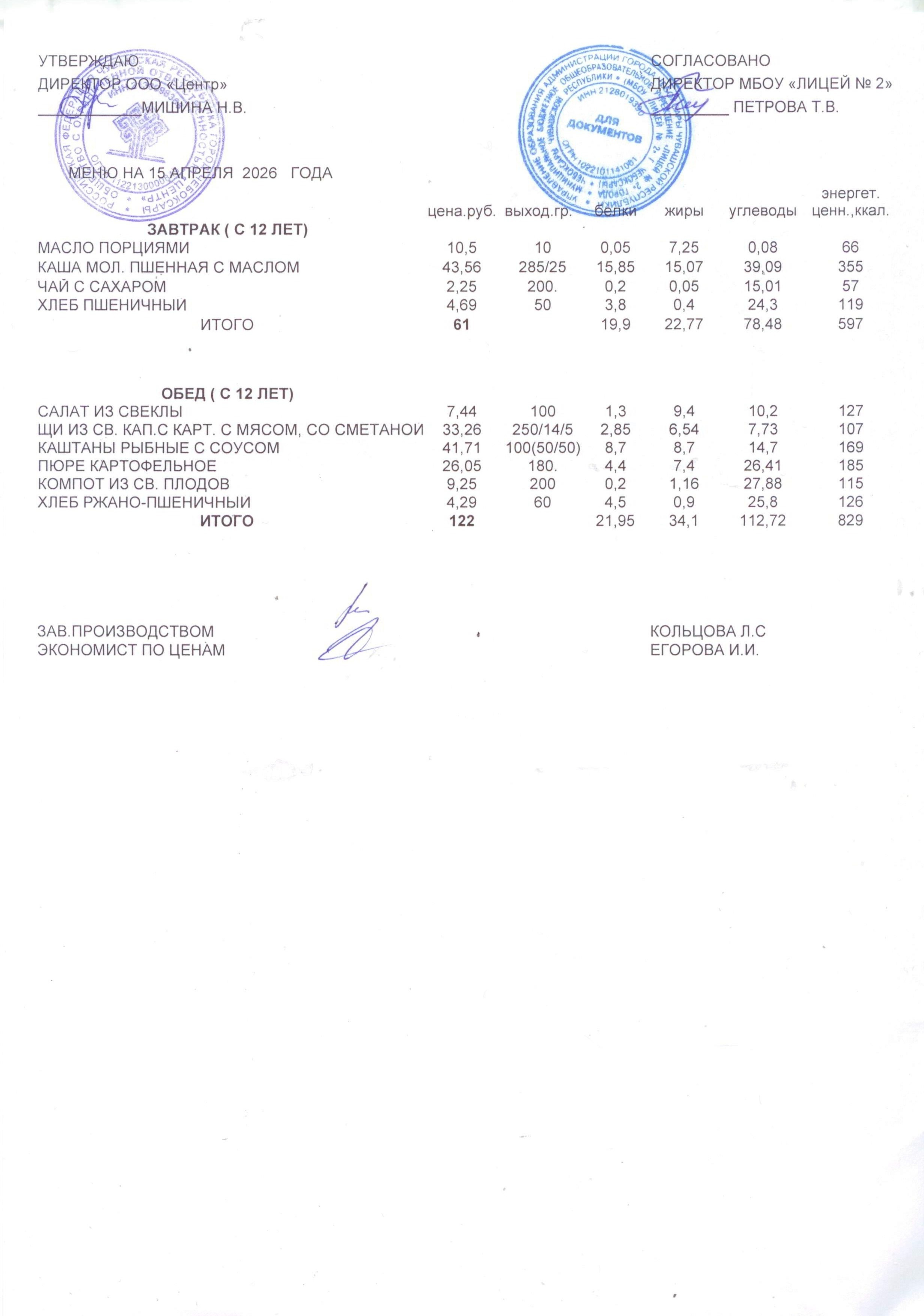 Ежедневное меню 9-11 классы 2025-26 уч. год