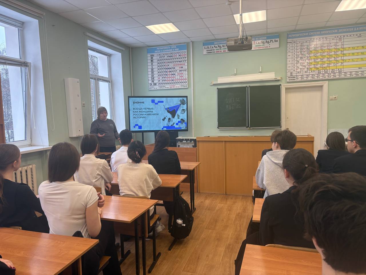Об этом в частности говорила на своей лекции "Всегда первые: как женщины России изменили историю" советник по воспитанию МБОУ "Лицей №2" г. Чебоксары, лектор Российского общества "Знание" Наталия Кириллова.