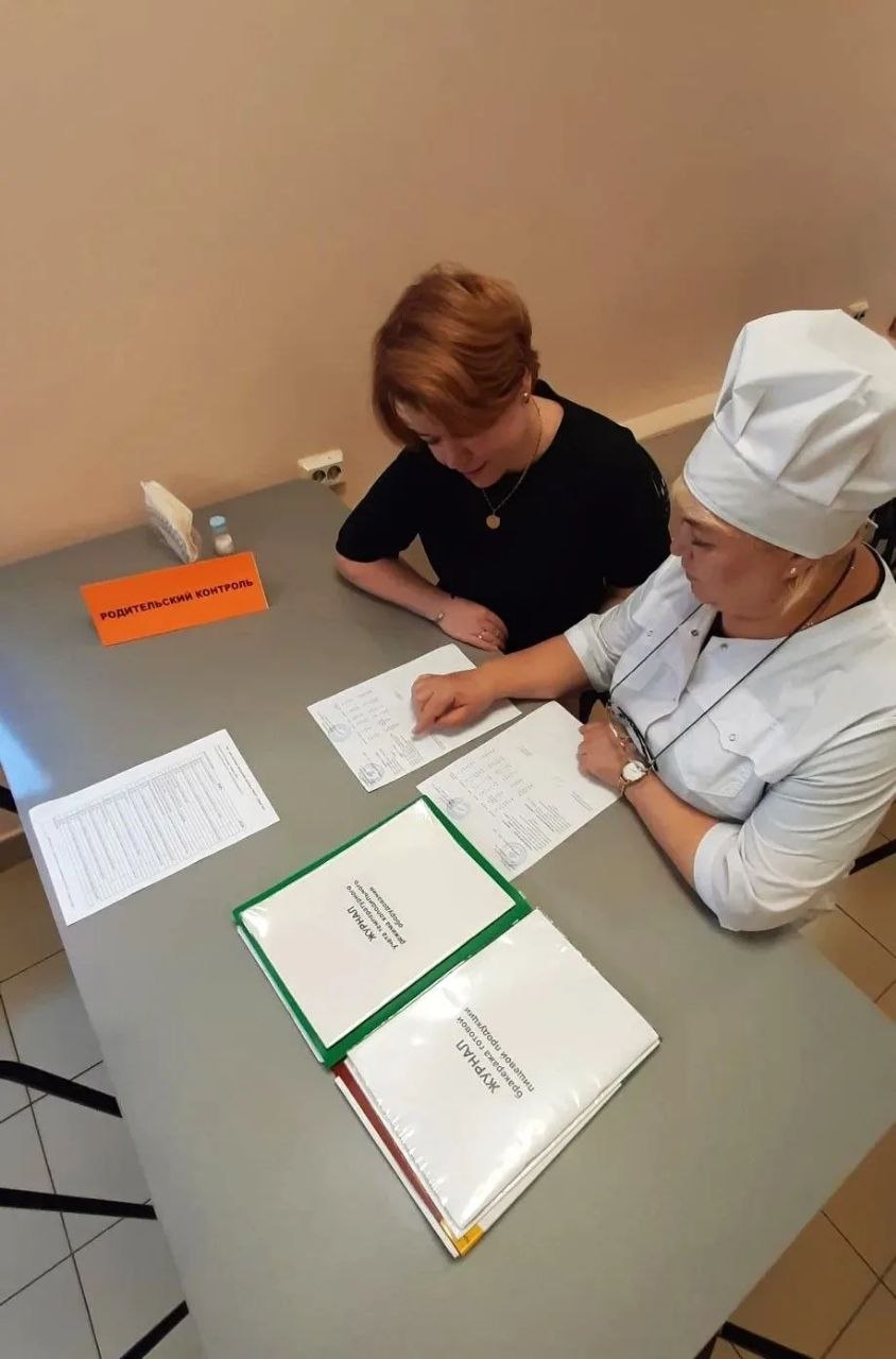 Она проверила качество организации питания в соответствии с чек-листом общественного родительского контроля: ученики соблюдают правила личной гигиены, имеются условия для мытья, дезинфекции рук; санитарно-техническое состояние обеденного зала нормальное (посуда без сколов, обеденные столы чистые, без видимых повреждений, насекомые не обнаружены, имеются условия для реализации буфетной продукции), имеется график приема пищи, вывешено ежедневное меню, выставлено контрольное блюдо. В меню отсутствуют запрещённые продукты. От всех партий приготовляемых блюд снимается бракераж. Имеется журнал бракеража, заполненный на 08.04.2026. Состояние спецодежды у сотрудников столовой хорошее, имеются маски, одноразовые перчатки, в столовой чисто, уютно, работники столовой приветливы. Обеденные столы моются горячей водой после приема пищи каждым классом.